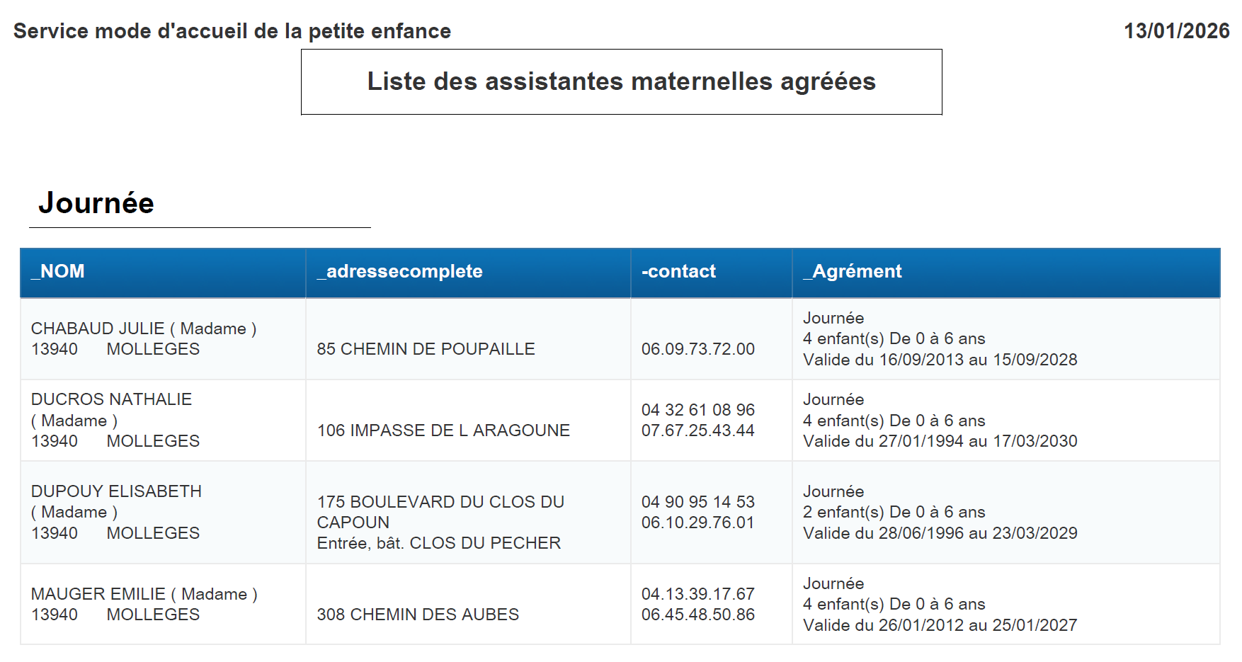 Liste des assistantes maternelles agréées sur la commune