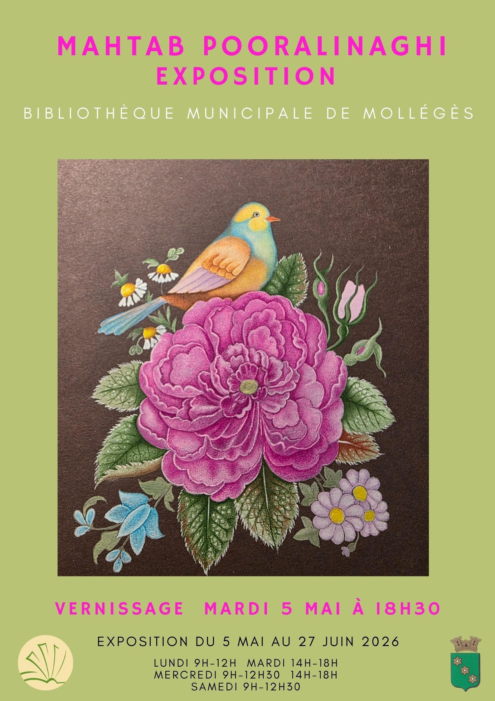 Jusqu'au 27 juin, la bibliothèque municipale accueille les œuvres de cette artiste d’origine iranienne, qui nous offre un univers visuel d’une rare sensibilité. Riche de ses voyages, son travail est une véritable invitation à l'évasion, mêlant douceur et imagination. Vernissage : 5 mai à 18h30.