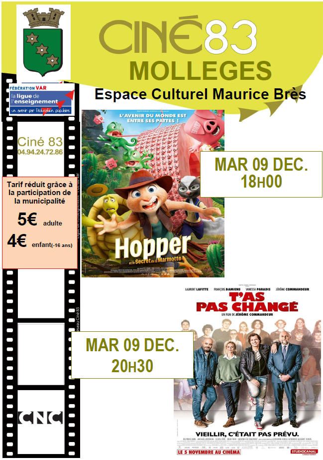 🎬 Mardi 9 décembre, la municipalité de Mollégès propose une double séance "ciné" à l'Espace Culturel Maurice Brès :