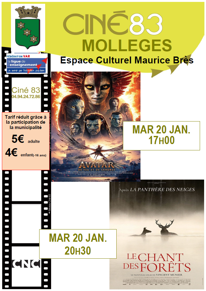 🎬 Mardi 20 janvier, la municipalité de Mollégès propose une double séance "ciné" à l'Espace Culturel Maurice Brès :
