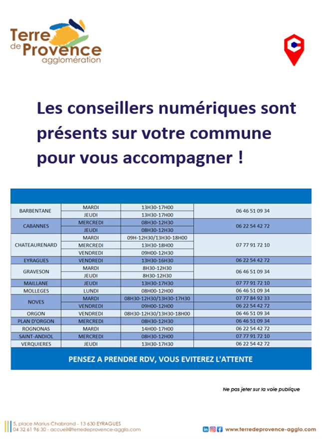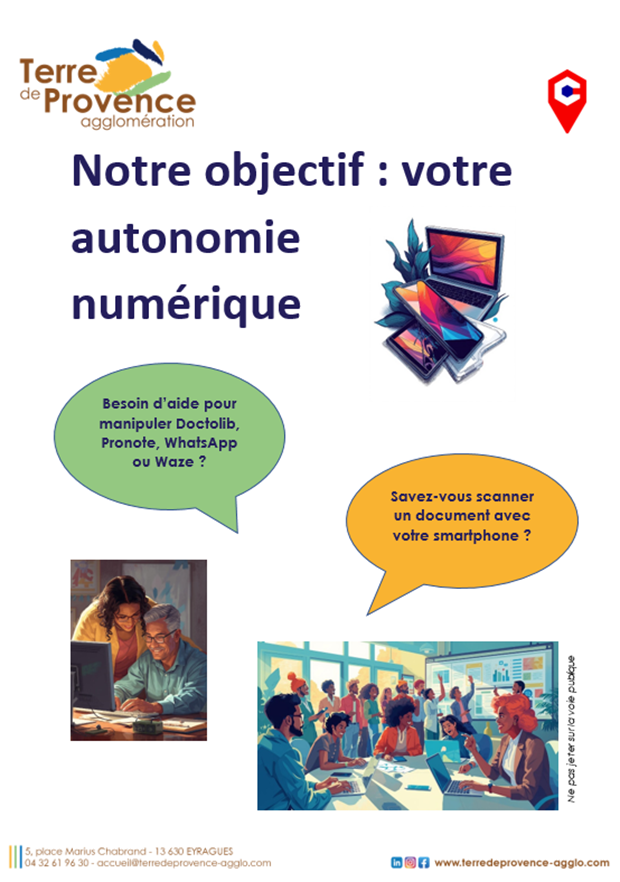 En partenariat avec la commune, la conseillère numérique de Terre de Provence agglomération propose un atelier collectif gratuit le lundi 26 janvier à 10h dans la salle des mariages. Indispensable pour les nouveaux arrivants en vue des élections municipales (15 mars). Inscriptions : 06 46 51 09 34.