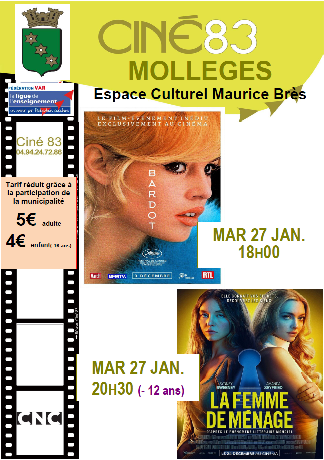 🎬 Mardi 27 janvier, la municipalité de Mollégès propose une double séance "ciné" à l'Espace Culturel Maurice Brès :