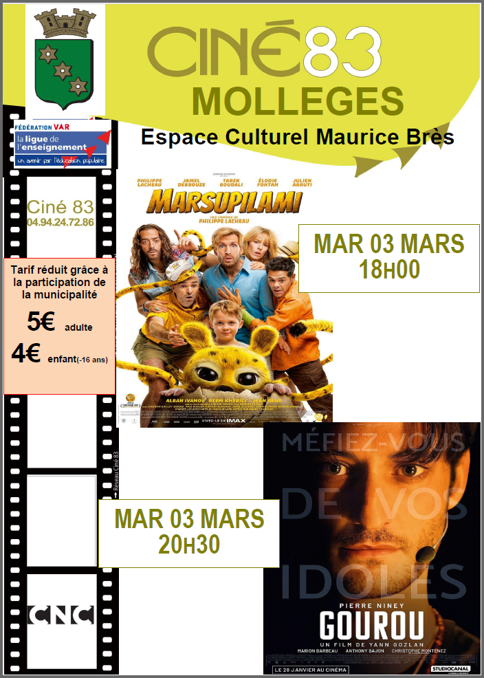 🎬 Mardi 3 mars, la municipalité de Mollégès propose une double séance "ciné" à l'Espace Culturel Maurice Brès :